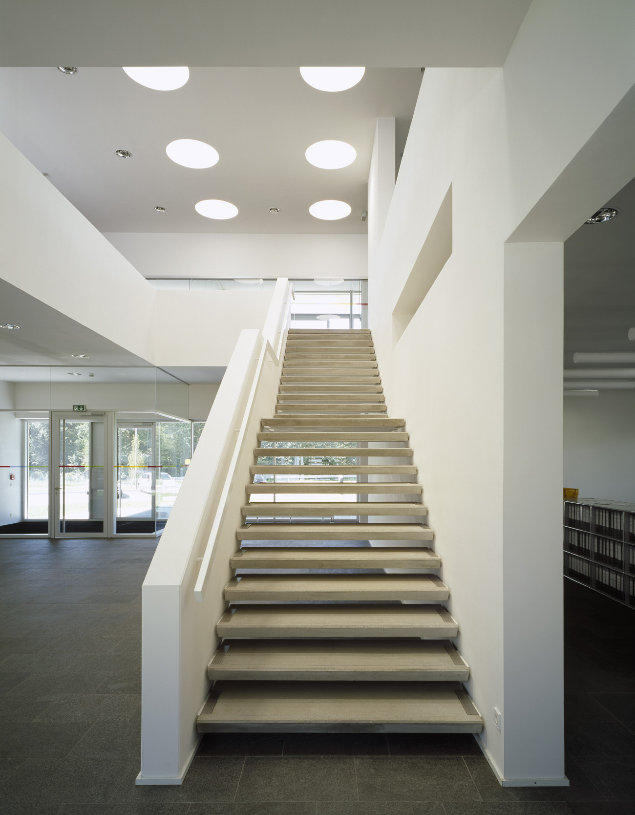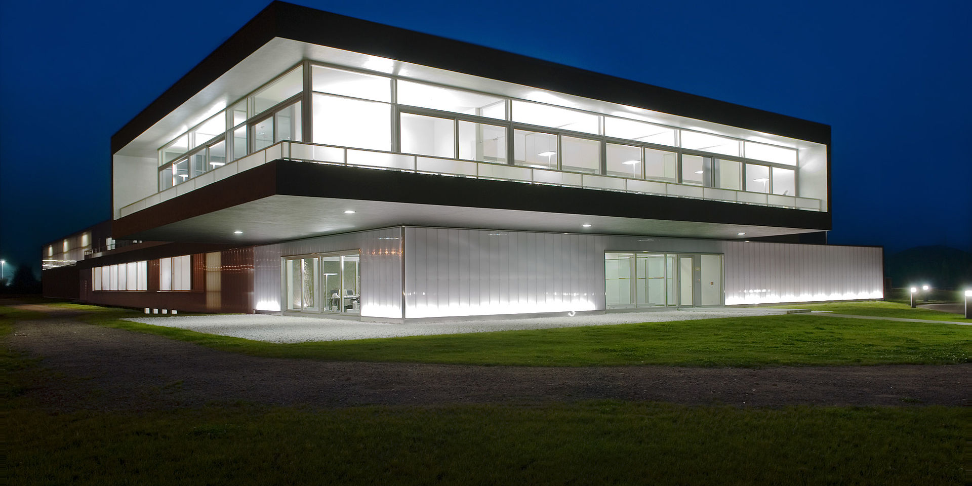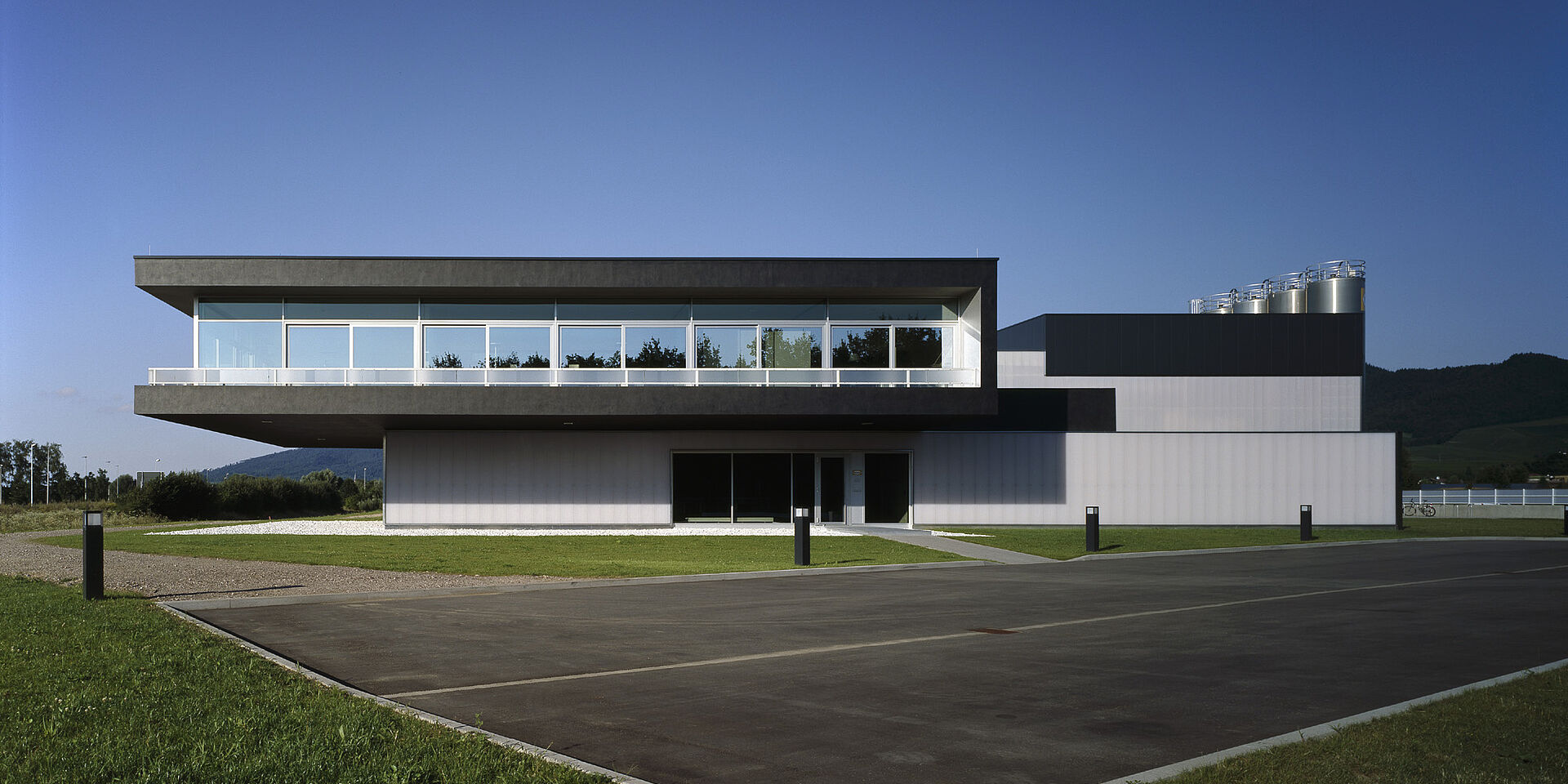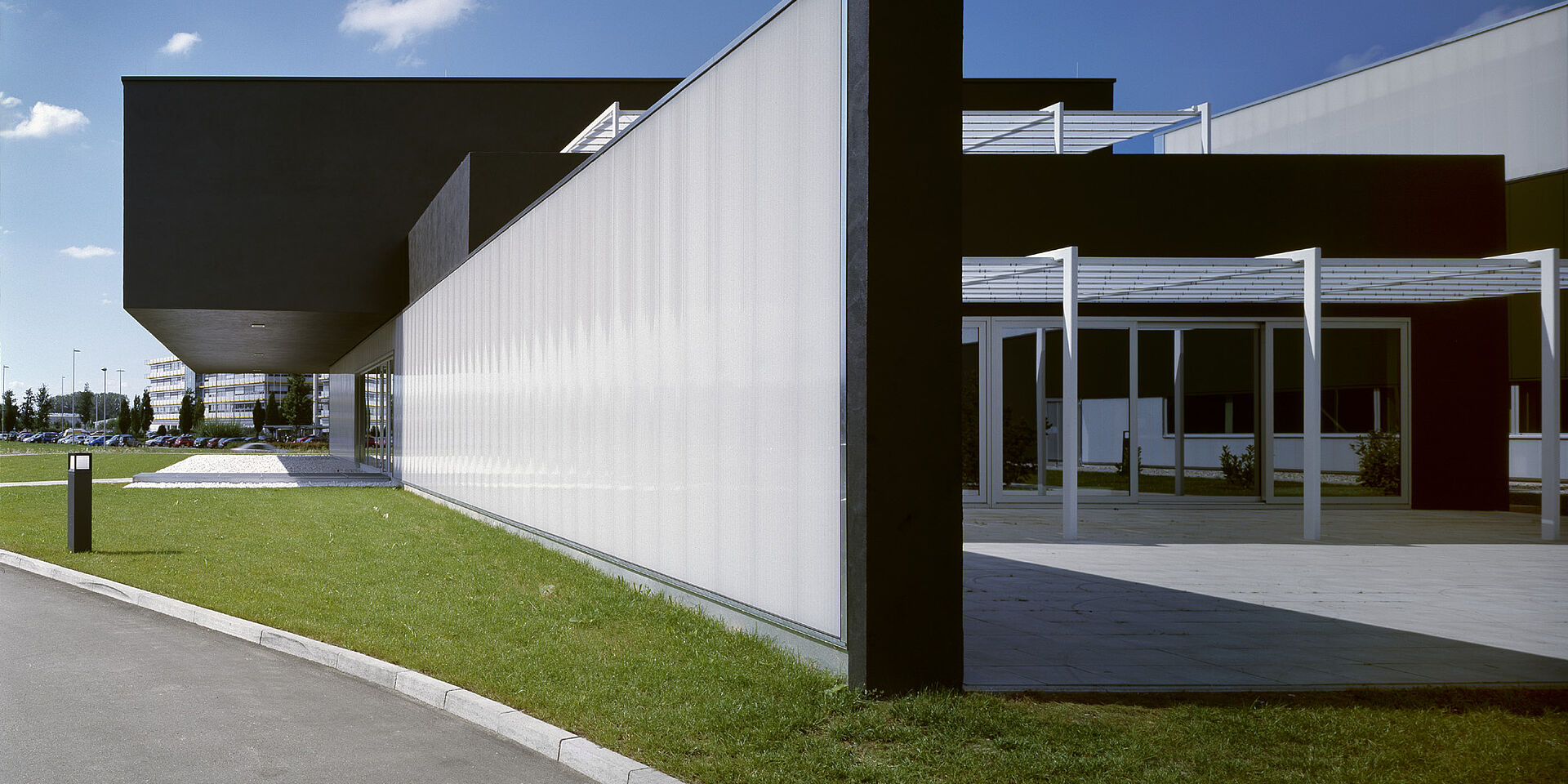 Neubau eines Produktionsgebäudes und eines Verwaltungsgebäudes. Die Gebäudestruktur folgt dem stringenten Materialfluß der thermoplastischen Verarbeitungslinien. Der Bürotrakt ist 7m frei diagonal auskragend. Integraler Bestandteil des Energiekonzeptes ist eine Raumtemperierung mittels Brunnenwasser.