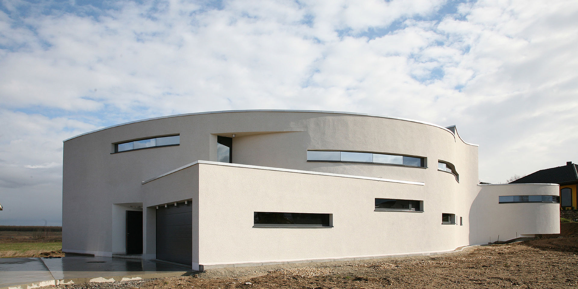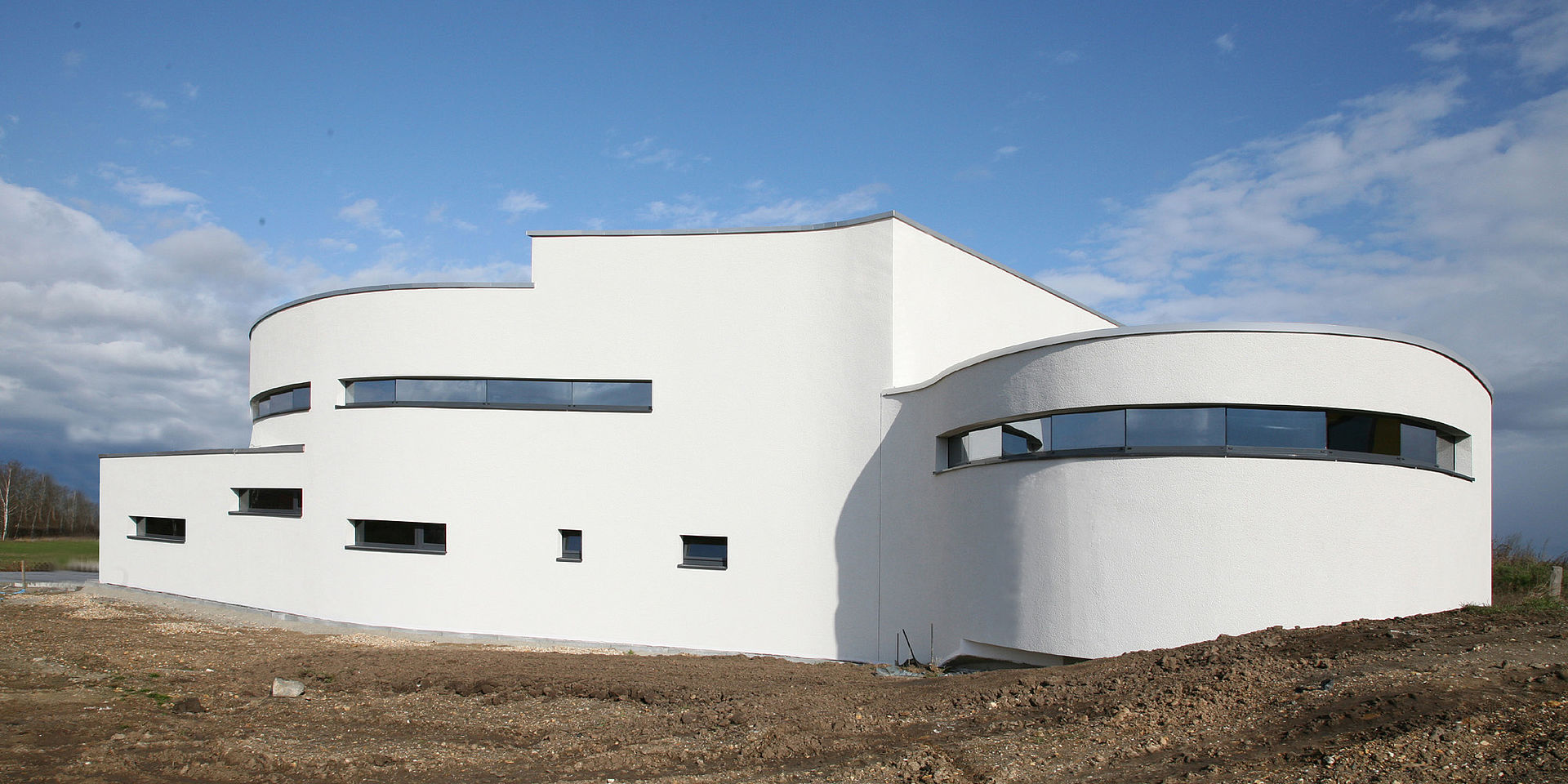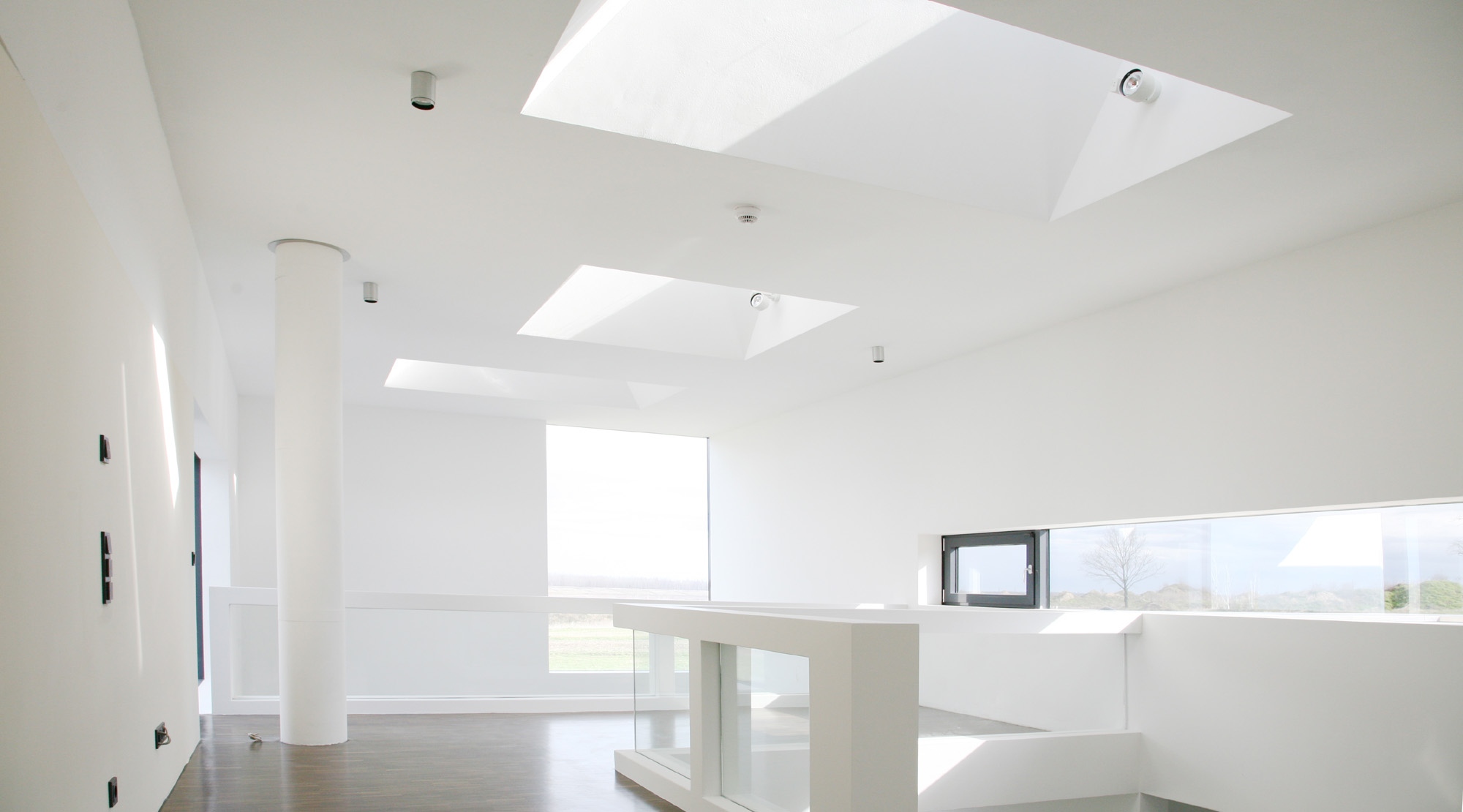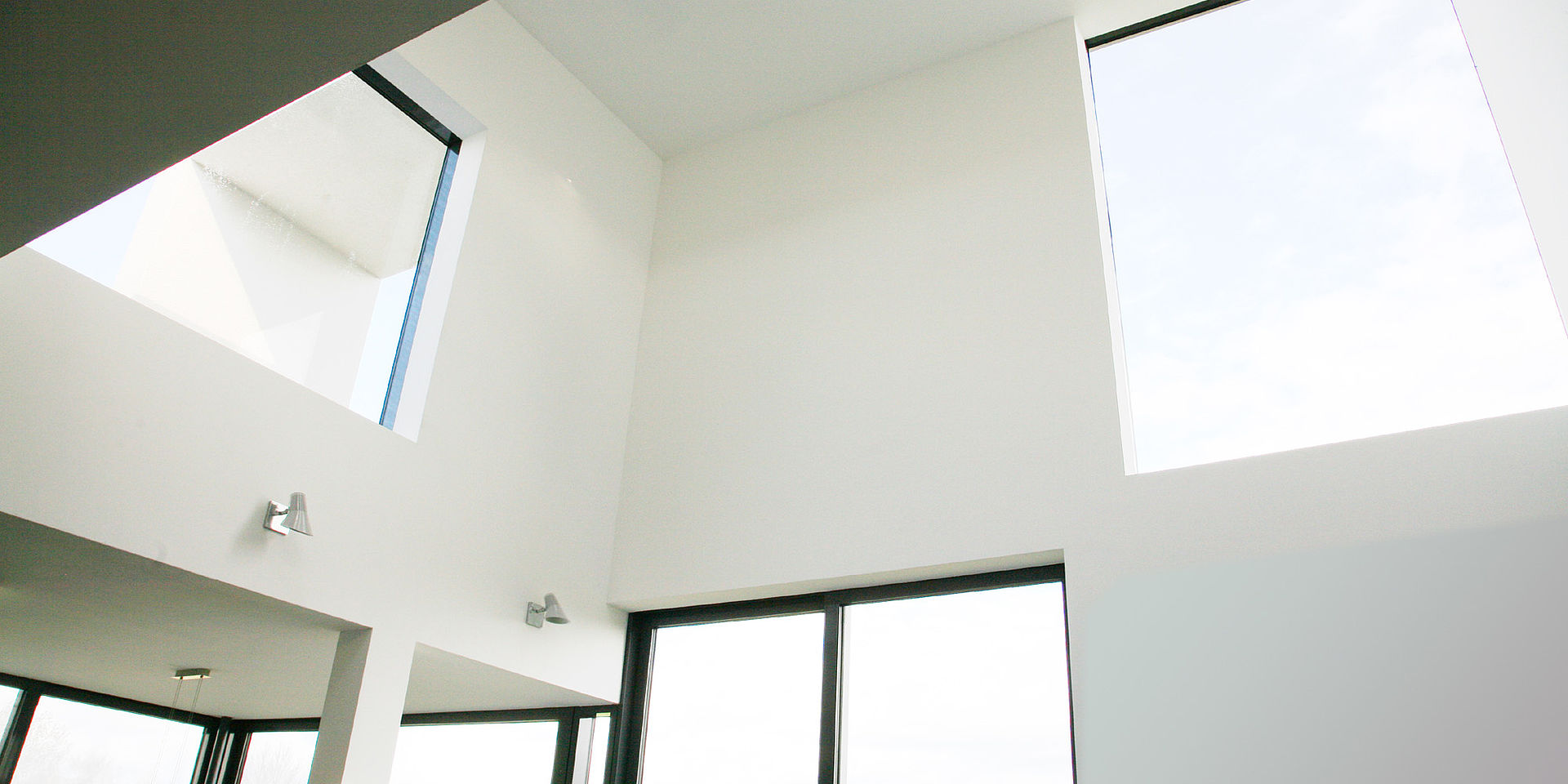 Um den Wärmeeintrag im Sommer bei hochstehender Sonne zu minimieren, werden die Fenster durch die überkragenden Bauteile natürlich verschattet. Im Winter hingegen, ist der energetische Wärmeeintrag der tiefstehenden Sonne, die dann direkt auf die Verglasung strahlt, eine willkommene Wärmequelle. Die Form der natürlichen Verschattung wurde mittels Sonnendiagramm ermittelt. Um Blendungen an den Arbeitsplätzen auszuschließen, ist das Gebäude mit innenliegenden Flächenvorhängen ausgestattet. Ein innovatives Kühlsystem temperiert die Büroarbeitsplätze angenehm über Metalldecken.