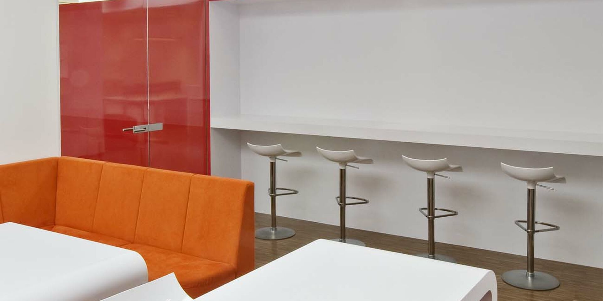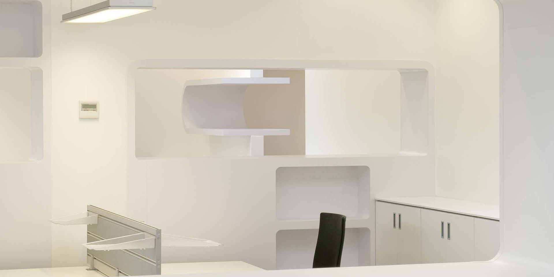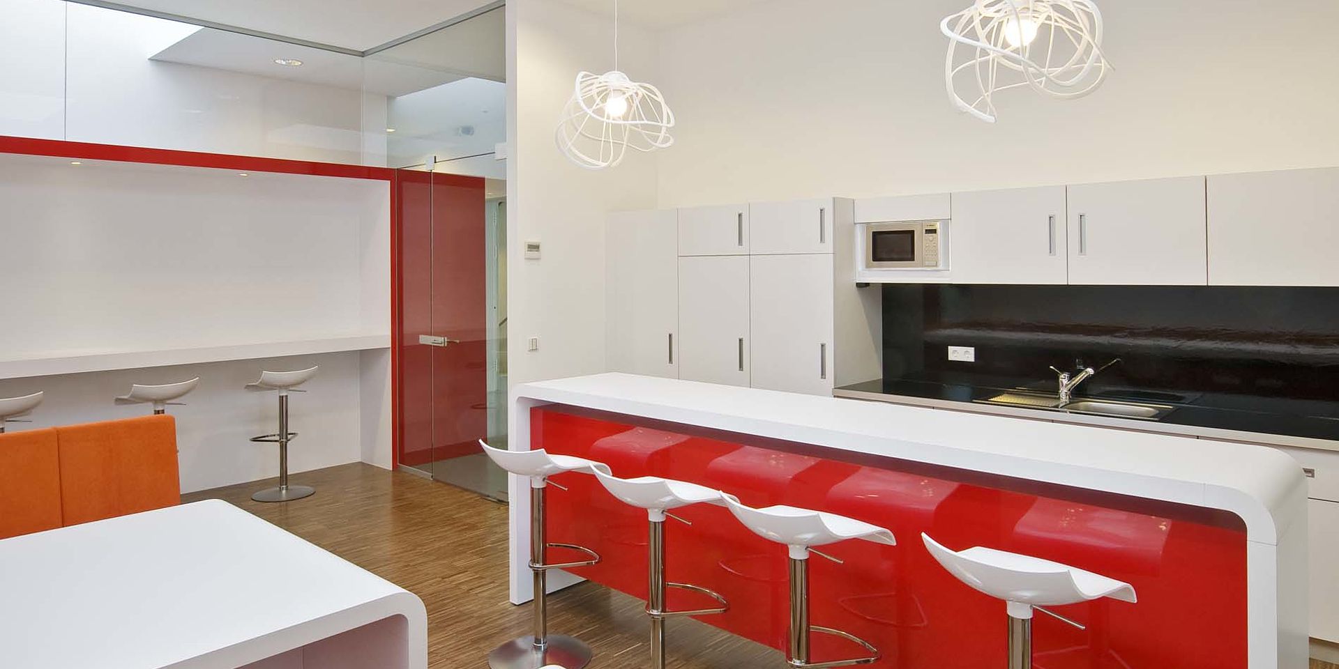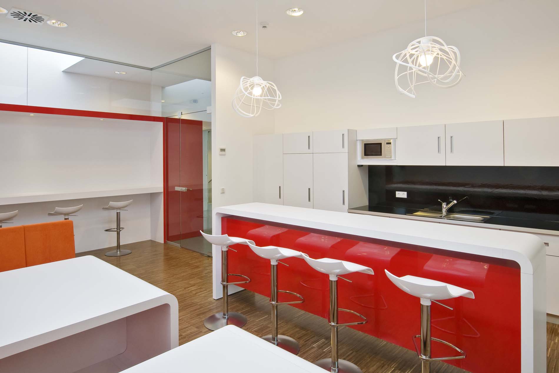 Eine zeitgemäße Bürolandschaft sollte 24 neue Arbeitsplätze bieten. Zusätzlich sollten eine Cafeteria mit Pausenraum, eine Kommunikationszone und Stauplatz für Papier und Drucker integriert werden. Um so viel natürliches Licht wie möglich in die Büroräume zu leiten wurden zwölf großformatige Oberlichter gleichmäßig an der Decke verteilt. Entlang der Lichtachsen wurden die Arbeitsplätze in Nischen angeordnet. Diese Arbeitsinseln wurden mithilfe von raumhohen Einbauwandelementen in Leichtbaukonstruktion realisiert. Aus den Wänden wurden an Fenster erinnernde Löcher geschnitten, die Blicke in verschiedene Richtungen freigeben und die interne Kommunikation ermöglichen.